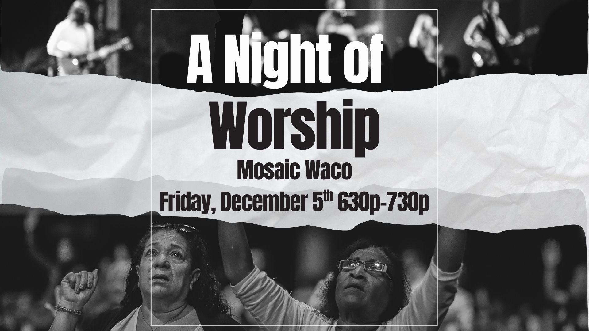 Mark your calendar for THIS Friday, December 5th 630p-730p here at Mosaic, for an evening set apart for worship. We’ll fill the room with songs of praise and create space for prayer, seeking the heart of God as we enter the Advent season.