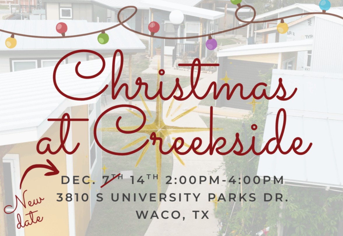 Join Creekside Community on Sunday, December 14th 2p-4p for an Open House to celebrate phase one of the community village. Tour the neighborhood, enjoy Christmas treats and hear more about the commitment to creating homes for those in need. More details HERE.
